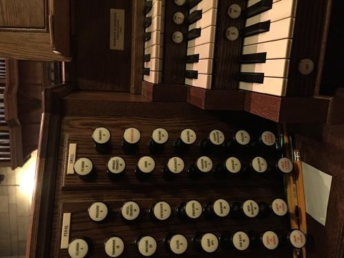 Installed in 2001, the 3-manual, 49-stop Harrison & Harrison pipe organ resides in the loft on the south side of the chancel. Built of American oak, the casework designed by David Graebe matches the gothic style of the church and includes a pair of angel trumpeters located at the east and west ends of the organ case. The console is located in the choir stalls on the north side.