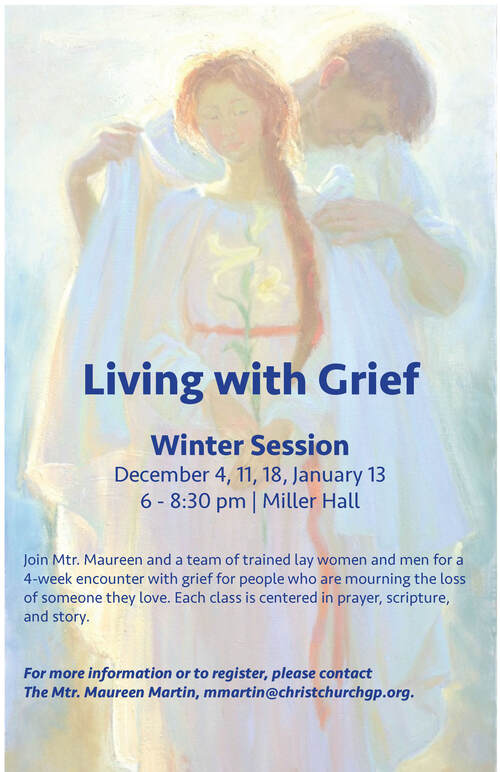 Living with Grief is a 4-week encounter with grief for people who are mourning the loss of someone they love. Each class is centered in prayer, scripture, and story.